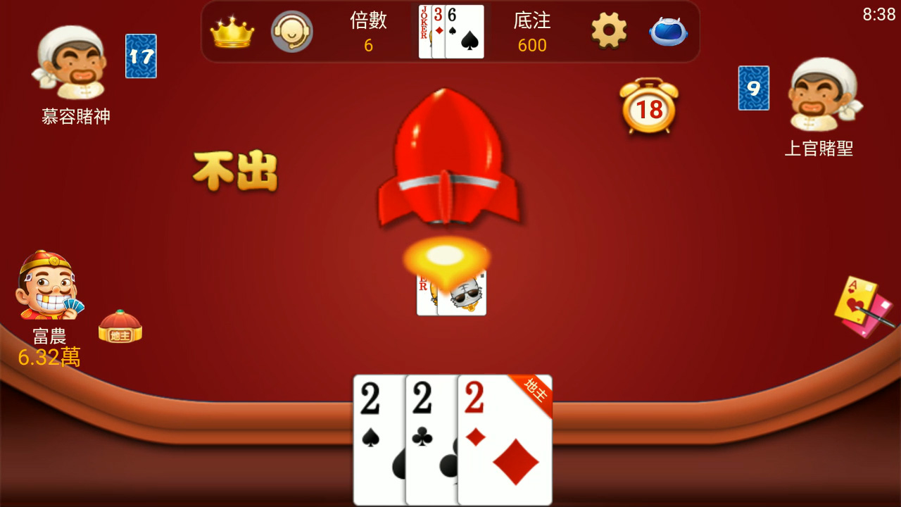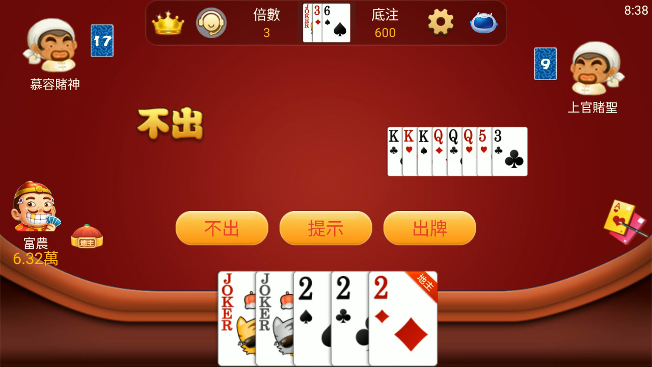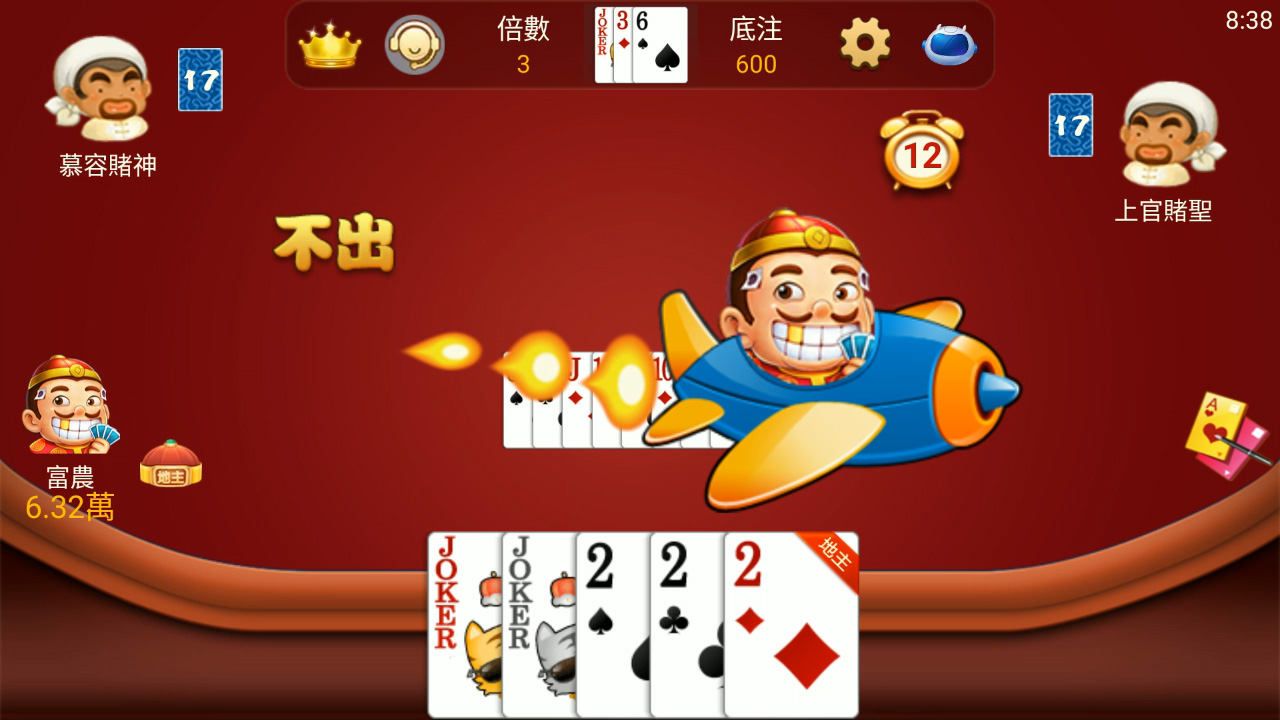 大小適中的撲克牌,操作順暢,流暢的動畫效果,深具競爭力和挑戰性的電腦智慧玩家。