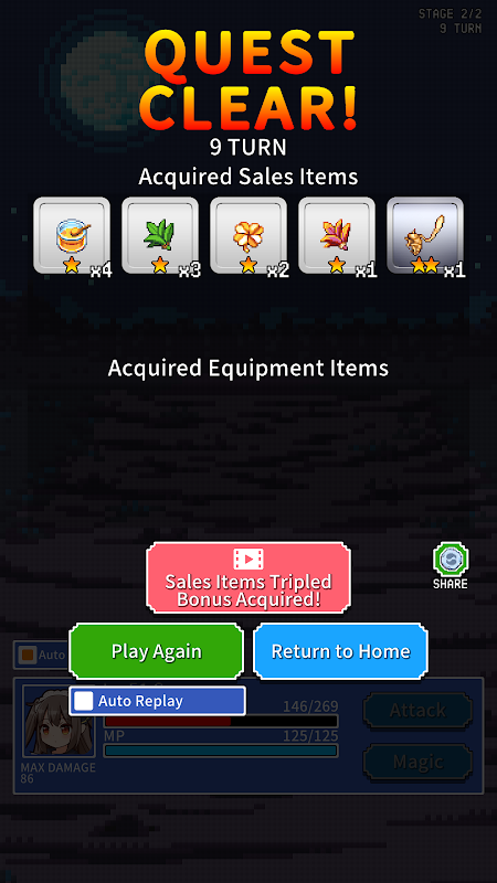 Defeating enemies in quests drops items you can sell in the shop, as well as weapons and armor you can equip.