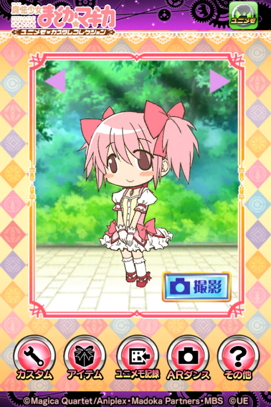 さらに、ARカメラ機能を搭載しておりますので「魔法少女まどかマギカ」の登場キャラと一緒に記念撮影が可能です。