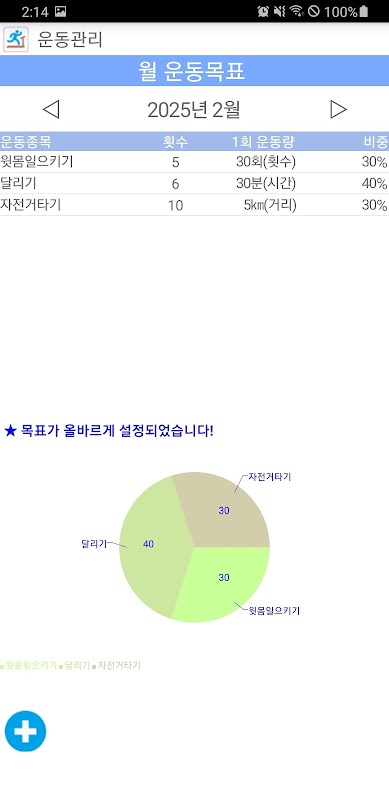 ㅇ View the goal achievement rate for each exercise item (graph)