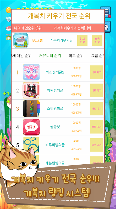 - 상대와 대결할 수 있는 복치 배틀 시스템