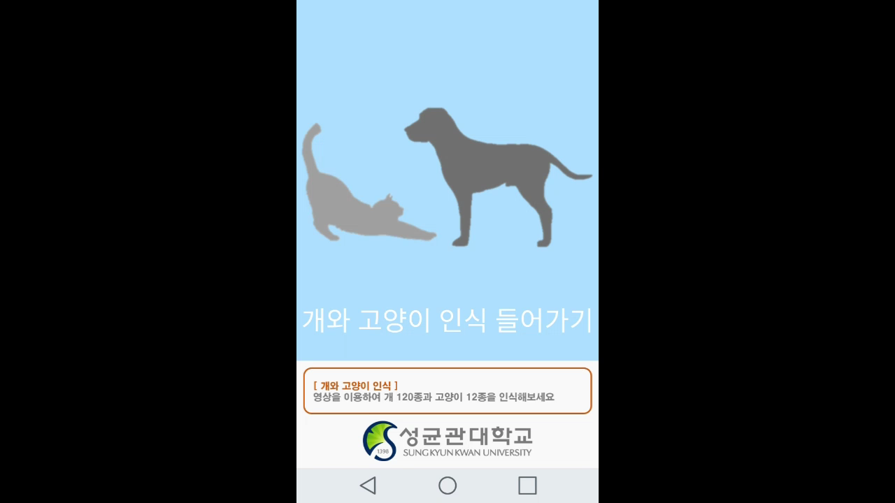 ◎ '개와 고양이 인식 들어가기' 버튼을 클릭