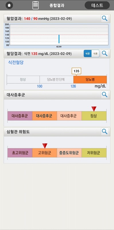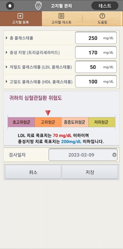 -Based on blood pressure, blood sugar, blood test and medical history information entered in real time according to the hyperlipidemia management guidelines, it provides arteriosclerosis risk calculation, cholesterol treatment target value, obesity level, and degree of metabolic syndrome.