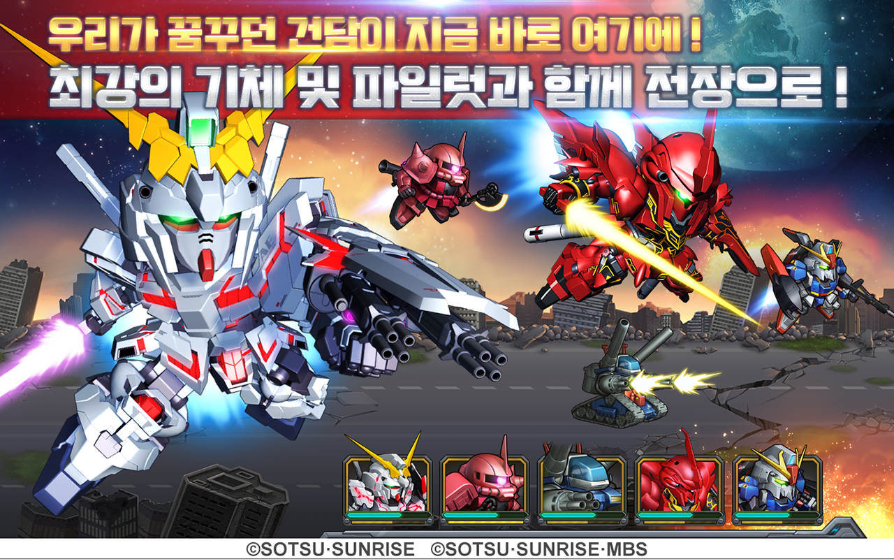 - 실제 건담 원작과 동일한 스킬 구현, 두 눈을 사로잡는 화려한 애니메이션!