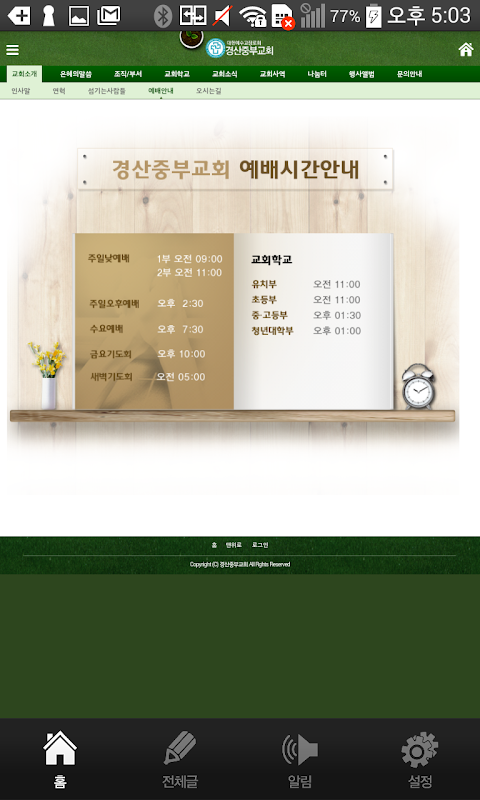 * 100% 연동형 앱 : 홈페이지에 등록된 내용, 게시물, 설교영상, 사진 등의 콘텐츠를 앱과 100% 연동하여 실시간으로 앱을 통해 확인할 수 있습니다.