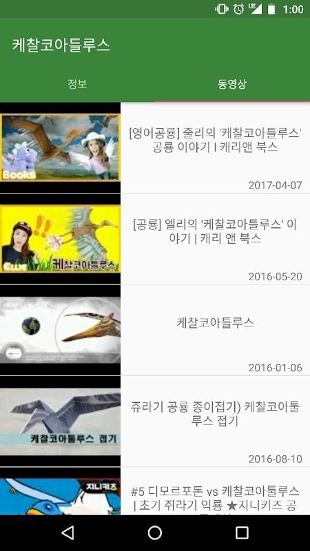 App where you can see the video with the YouTube information about dinosaurs