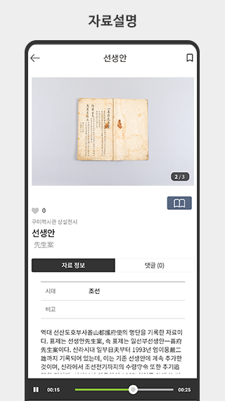 고서/고문서 보기를 통해 해당 전시자료 상세한 정보를 얻을 수 있습니다.