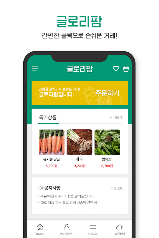 지금 글로리팜에서 신선한 먹거리를 만나보세요!