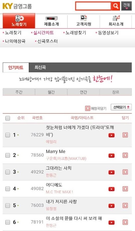 - 노래찾기를 이용해 원하는 곡을 찾아보세요!