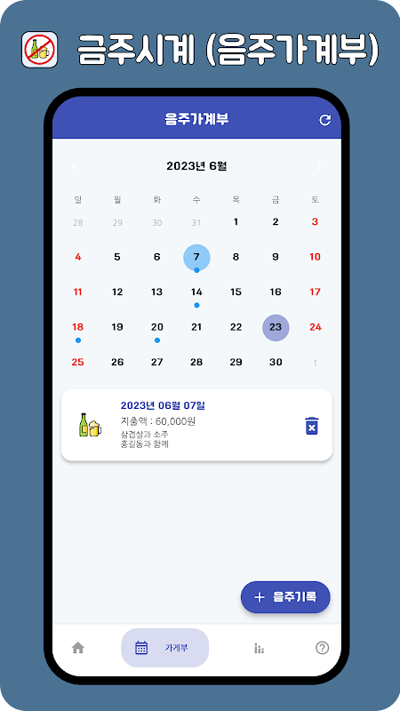 음주 가계부를 통해 음주기록을 저장하실 수 있습니다.