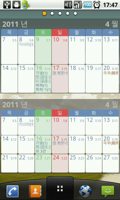 - 위젯(4x1, 4x2 달력) 1주/2주/3주 단위 표시 가능