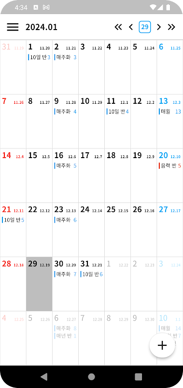 > 달력 전체화면 상태에서도 기념일 개수가 표시되도록 수정되었습니다.