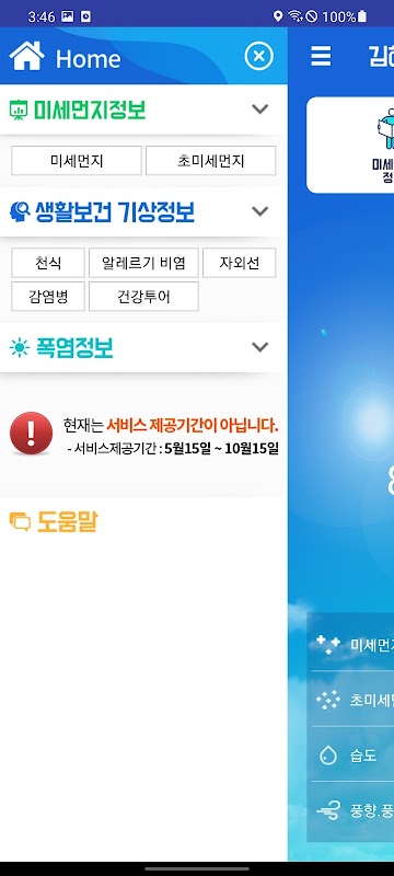 -지수 제공 범위 : 천식, 알레르기 비염, 자외선