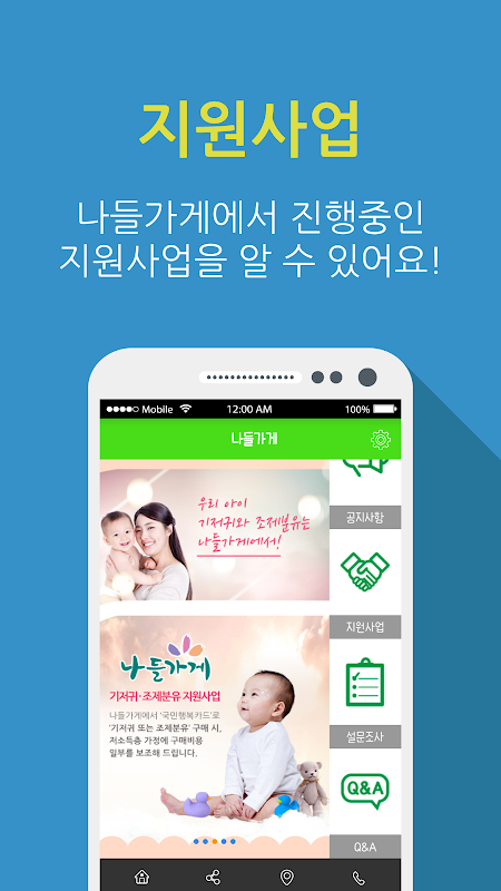 중소기업청과 소상공인시장진흥공단에서 동네수퍼 지원사업을 진행하고 있습니다. 우리 지역 수퍼들을 살리고 지역 경제가 활성화되도록 항상 바로 APP이 함께합니다. 나들가게와 관련된 상품 및 행사 등 다양한 정보를 제공합니다.