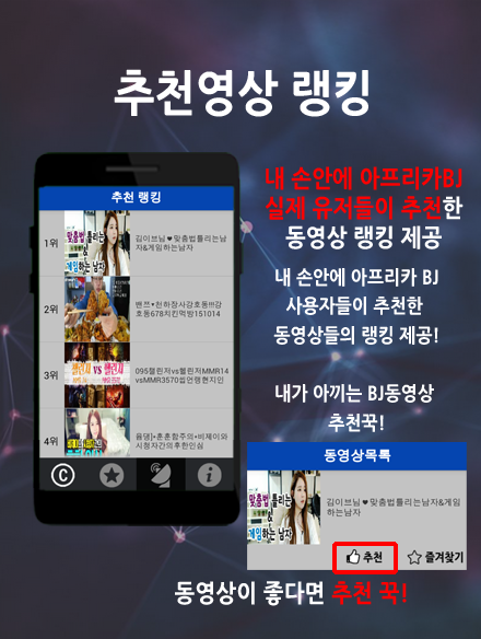 그리고 ' 내 손안에 아프리카BJ'유저들의 추천을 많이 받은 추천 랭킹까지!!