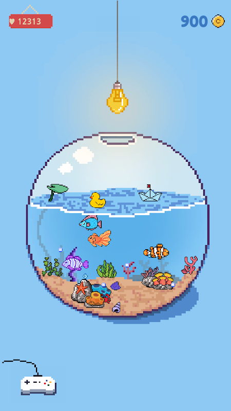 By solving 7 puzzles and earning coins, you can decorate the fish tank with various square logic designs.