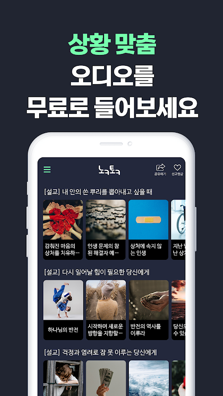Praise when you go to work, a counseling program when you are having a hard time, and easily meet your needs with audio anytime, anywhere!