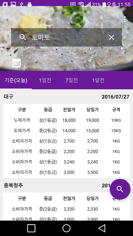 1. You can easily and easily check the consumer price and the retail price of agricultural products, livestock products, aquatic products in the order of the specified date, 1 day, 7 days and 1 month ago.