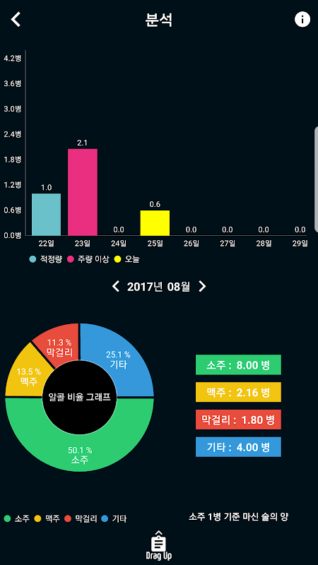 내가 마신 술의 양을 등록하면 월별로 내가 가장 많은 비율로 마신