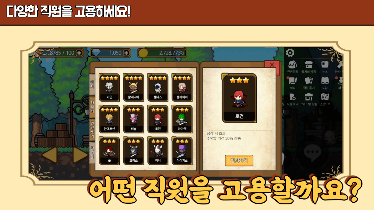 직원 수집은 게임 내 재화로도 가능합니다.