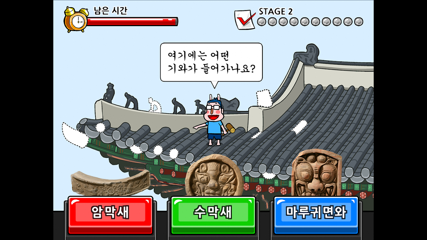 백제에서 기와를 만드는 장인들에게 수여했던 관직이 바로 와박사입니다. 와박사들은 일본으로 건너가 와당문화를 전파하기도 하였답니다. 바로 그 기와박사의 후예에 도전해보는 게임입니다.