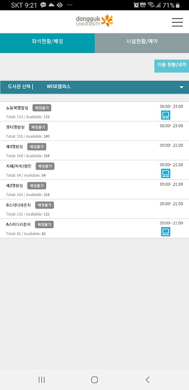 동국대학교 WISE캠퍼스 도서관 시설예약시스템 0.01.70