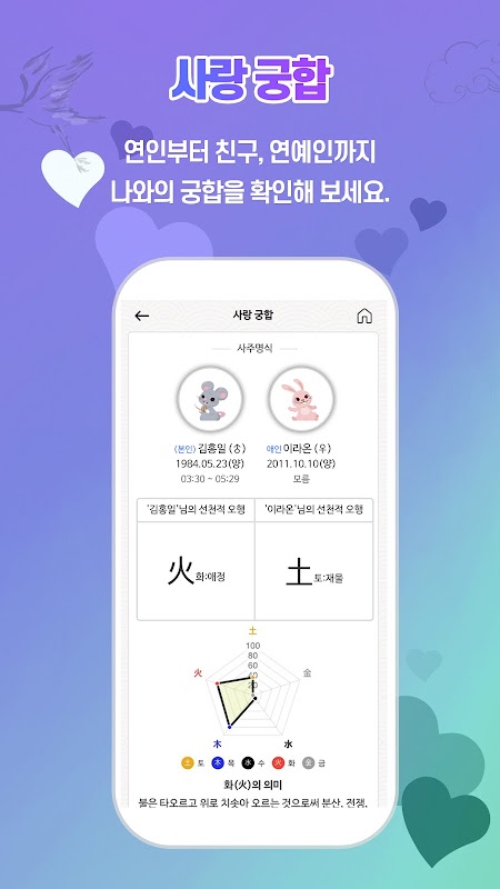 - Compatibility: Check various compatibility from lovers to friends and celebrities.