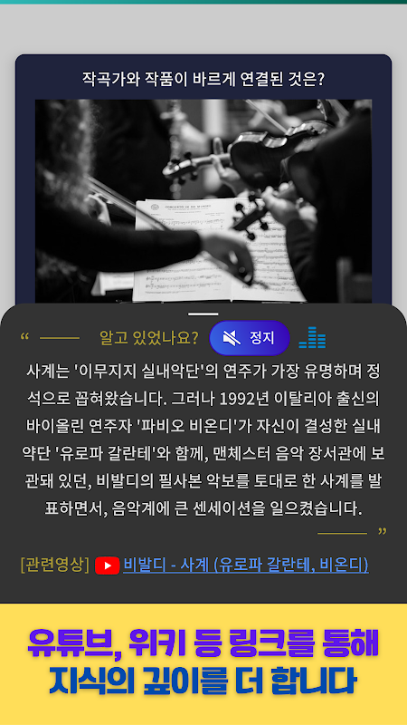 - 400 quizzes provide interesting explanations and related links to music, videos, etc.