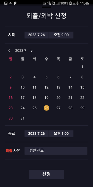 - Guardian: Provides services such as student status, reward/demerit point history, outing/stayout history, etc. through mobile phone