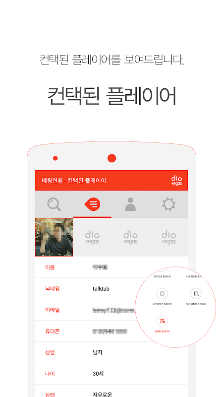 내가 베팅한 플레이어부터 최근에 본 플레이어, 컨택된 플레이어까지 한눈에 확인하세요.