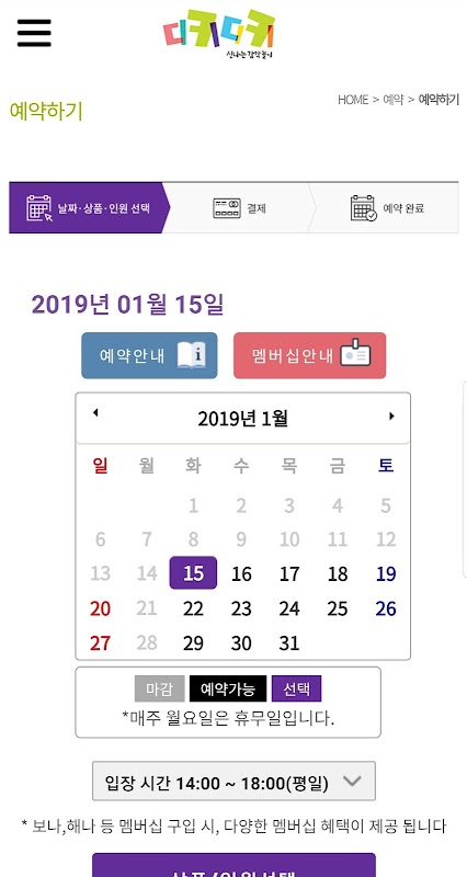날짜와 인원만 선택하시면 손쉽게 예약이 가능합니다.