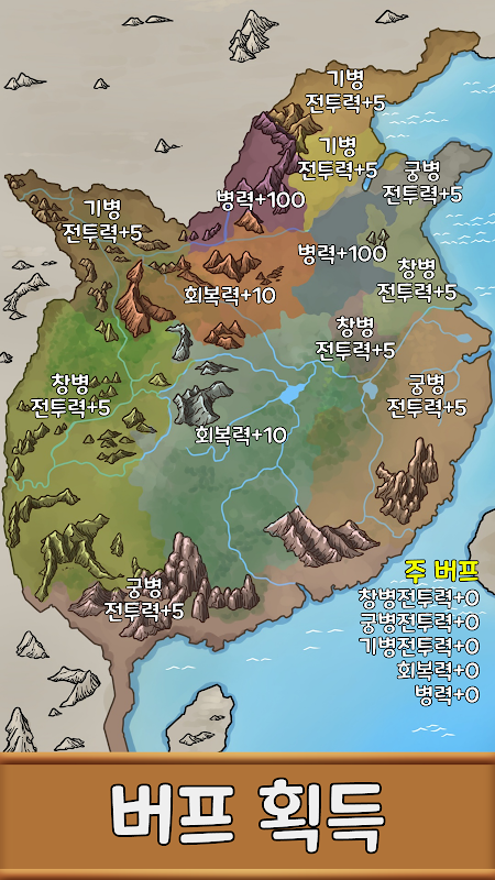 장수들을 레벨업하여 앞을 가로막는 적을 물리치고 더 큰 보상을 획득하라!