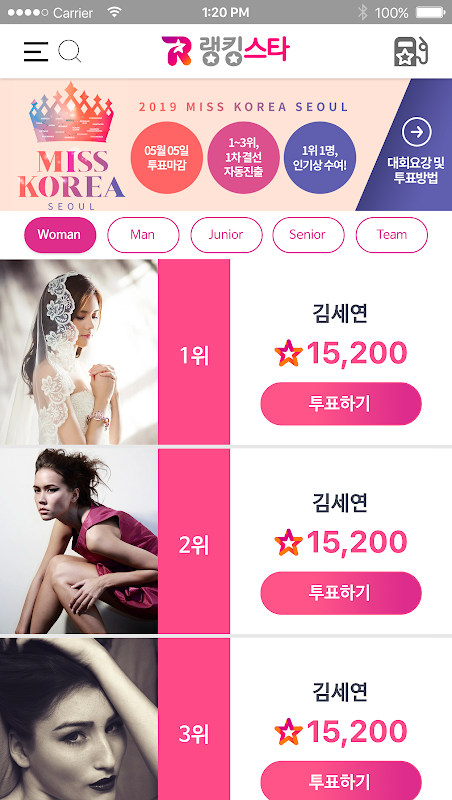 This is the official popular voting app provided by Beauty Korea, the organizer of Miss Korea Seoul Convention.