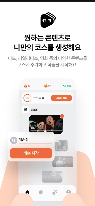 • Collect only the expressions you added and learn them in a fun, game-like way with various learning methods like listening, shadowing, and multiple-choice quizzes.
