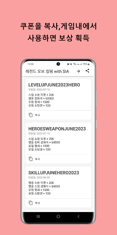 Use the coupon that only I couldn't use before it expires. You can show coupon information of "Legend of Kingdom" and receive push notifications when new coupons are issued.