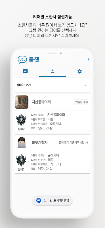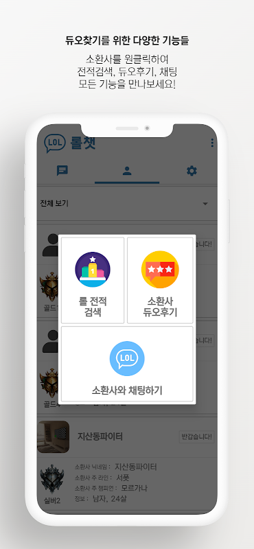 By arranging summoners by tier, you can easily match with the summoner of the tier you want, and unlike other chat apps, 100% free without additional charges!! Available.