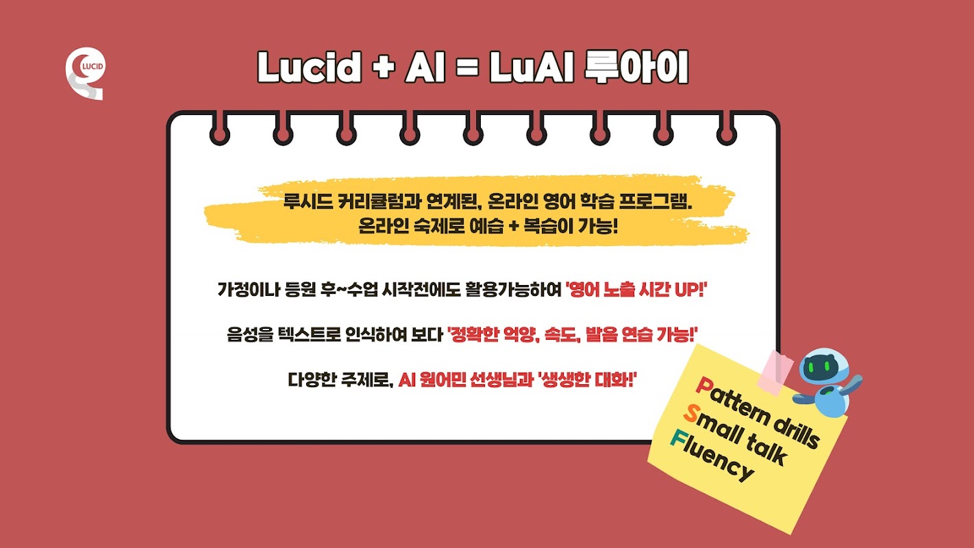 LuAI, equipped with online artificial intelligence, allows self-directed AI learning as well as learning management and improvement of English skills.