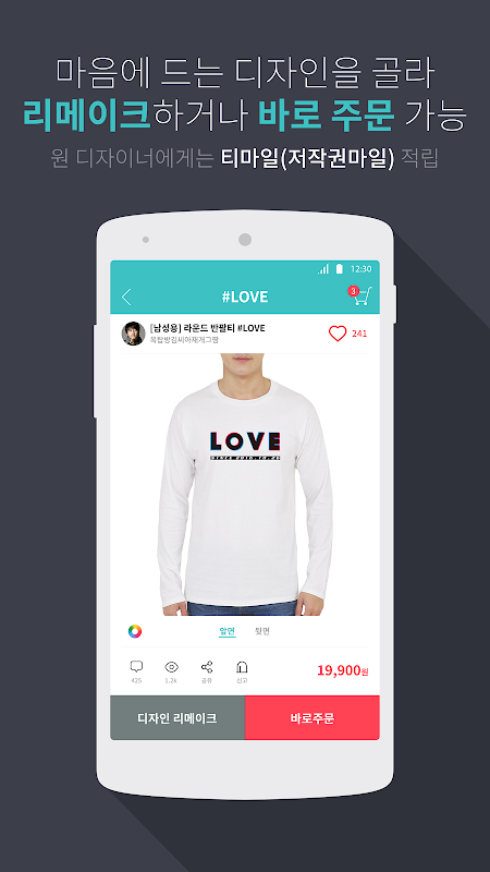 티셔츠 디자인만 하면 SNS로 공유할 수 있답니다^^
