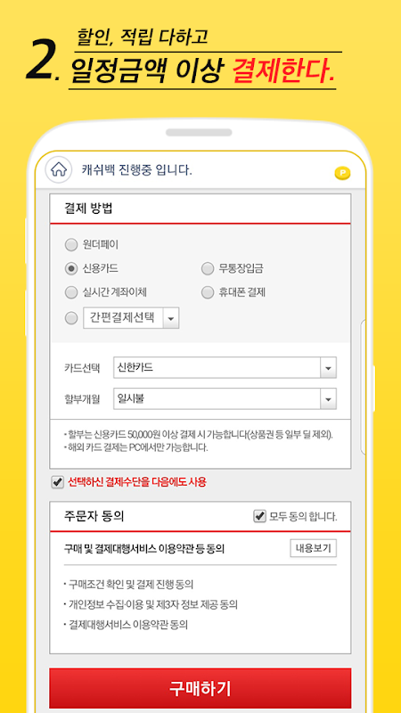 캐쉬백 3번만 적립받으면 금방 모인답니다~