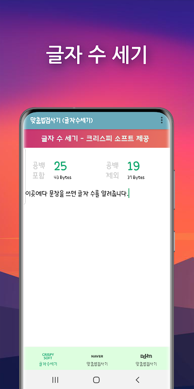 맞춤법 검사, 띄어쓰기, 글자수세기: 한글키보드 천지인 1.17.112