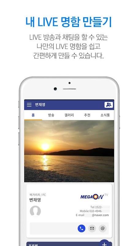 - LIVE 방송과 채팅을 할 수 있는 나만의 LIVE 명함을 쉽고 간편하게 만들 수 있습니다.