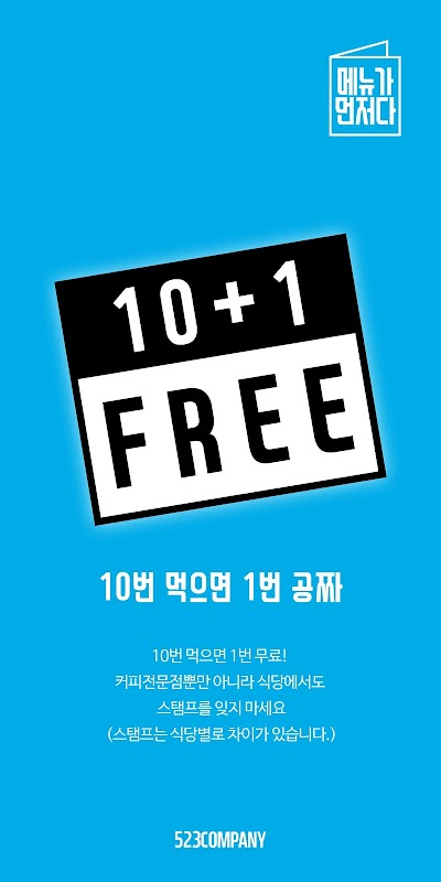 10번 먹으면 1번 무료! 커피전문점뿐만 아니라 식당에서도 스탬프를 잊지 마세요