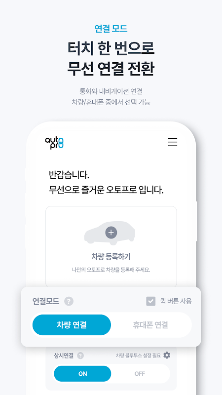 Connection mode and always-on control are available on the main screen, so you can immediately check the connection status and use convenience features without complicated procedures.