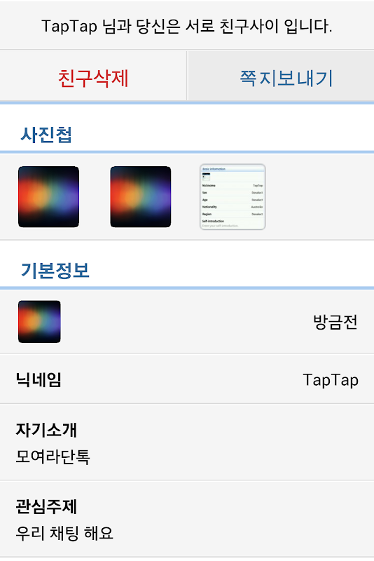 * 친구 아닌사람에게 쪽지신청, 친구신청, 단톡방 입장시 별이 소모되며 별은 일정시간 후 자동으로 충전됩니다.