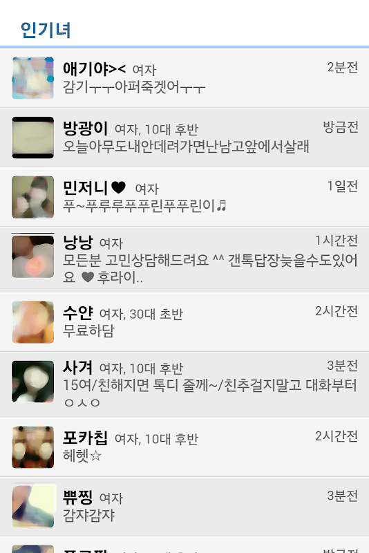 이 앱은 건전하고 깨끗한 인터넷문화를 추구합니다. 부적절한 행위에 대해 매우 엄격하게 제재하고 있으니 이용에 주의부탁드립니다.