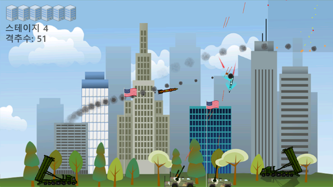 북한의 미사일을 요격하는 게임입니다.