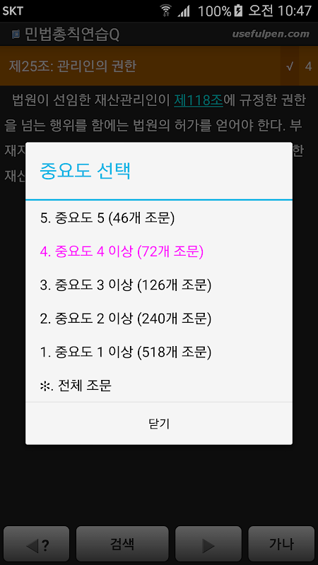 - 조문의 주요 키워드를 순차적으로 ‘숨김/표시’ 하여 암기효과 향상