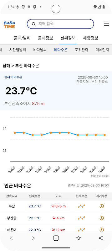 바다타임 (물때표, 조석예보, 바다날씨, 바다수온)