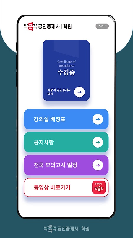 This is a newly prepared app exclusively for students at Park Moon-gak's real estate agent academy.