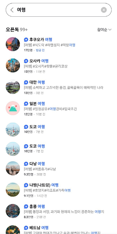 Bali travel information sharing open chat, Naver Open Talk shortcut app.